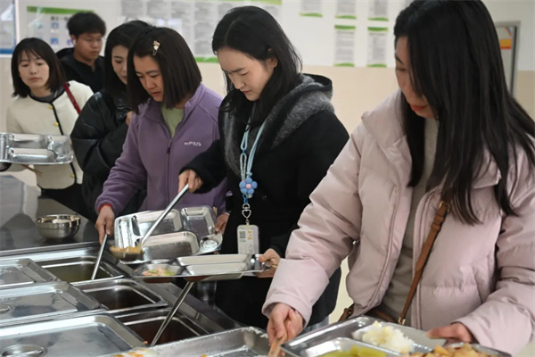 家长代表受学校邀请进行陪餐,亲身体验餐食口味与质量,切实感受校园膳食服务。