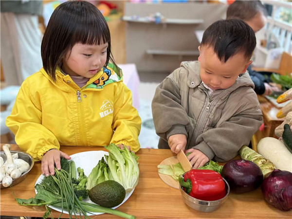 本次活动还设置了多元实践环节:彩虹小厨房里,幼儿化身小厨师,安全体验切菜、翻炒等操作,亲手制作彩虹时蔬;彩虹食物打卡让好好吃饭成为有仪式感的日常;幼儿还动手创作彩虹食物手工作品,开辟彩虹蔬菜园,种植辣椒、番茄、丝瓜、茄子,亲身感受食物从土地到餐桌的全过程。