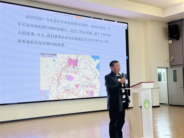 本次活动特邀社区老党员为孩子们讲述《少年英雄长征在四川的故事》。生动的讲述让波澜壮阔的历史画卷在孩子们眼前徐徐展开,一个个鲜活的四川长征故事,深深吸引着每一位小听众。