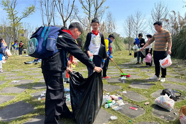 欢聚过后,孩子们没有急着离开,而是做了一件让春天更美的事——他们弯下腰,展开手中的垃圾袋,仔细地清理着每一片纸屑、每一个瓶罐。草地恢复如初,仿佛没有人来过。他们说:“要把春天留给下一个来看它的人。”