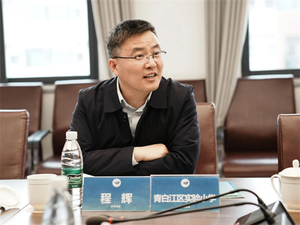 随后,学校组织行政团队和教师代表与考察团开展了多维度的座谈交流。各兄弟单位对成大附小“科学-科幻”双核驱动模式给予高度认可,高度评价附小为中小学科学教育实施提供了可借鉴的实践范本。成都市青白江区实验小学校长程辉,成都市龙泉驿区跃进小学校校长杨元建、副校长巫家勇,四川省彭州市延秀小学马洪敏主任详细地介绍了各自学校的工作经验与特色亮点,大家围绕科学教育课程设计、师资培养、资源整合等话题分享了工作思路、实践过程与育人成效,在交流碰撞中实现了集体智慧的生长和迭代。