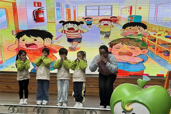情景剧结束后,老师带领孩子们共同回顾消防知识,在“闯关赛”中,孩子们快速掌握了冷静避险、有序撤离、不贪恋财物、拨打119报警等安全知识,争做勇敢自信的安全小卫士。