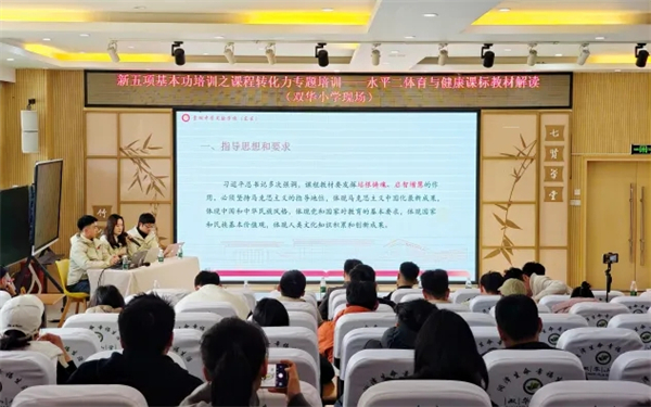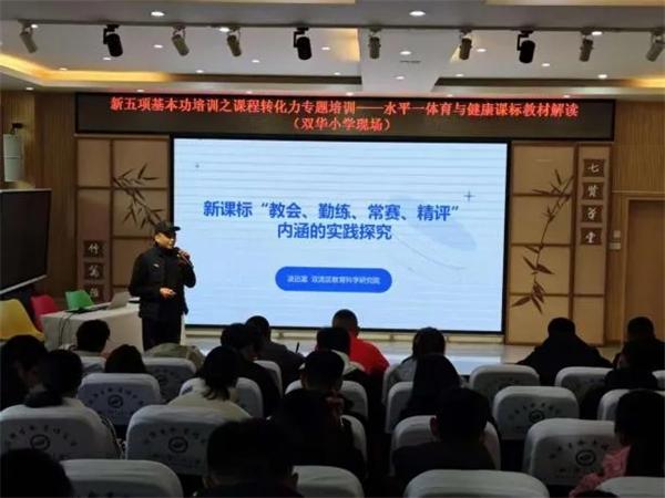 为落实新课标“教会、勤练、常赛、精评”内涵,提升体育教师课程转化能力,3月20日、23日,双流区小学体育“五项基本功-课程转化力”课标教材解读培训在双华小学开展,全区小学体育教师齐聚参与。