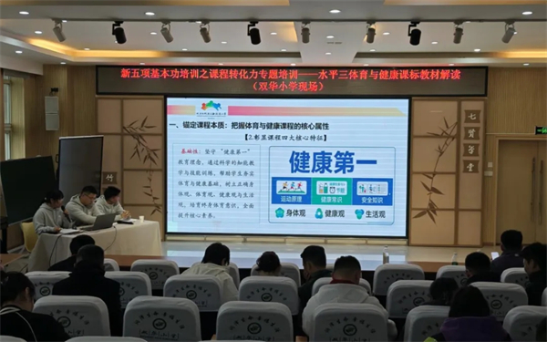 3月20日上午,双华小学体育组郎永秀、李天庚、向乾丹老师进行了“新五项基本功培训之课程转化力专项培训——水平一体育与健康课标教材解读”专题讲座。