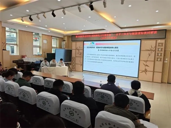 3月20日下午,棠湖中学实验学校(东区)的贾勇丽、范游昊、司志凯三位老师围绕“新五项基本功培训之课程转化力专项培训——水平二体育与健康课标教材解读”开展了专题讲座。