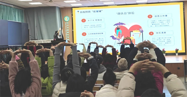 在忙碌的育儿生活中,家长也需要学会为自己“充电”。在李唯僮的带领下,家长体验了4-7-8呼吸法、三分钟肩颈放松操、感恩三件事、快乐清单等实用技巧。伴随着轻柔的引导,家长们闭上眼睛,用蝴蝶拍轻轻安抚自己——这一刻,他们既是孩子的守护者,也是需要被关爱的自己。
