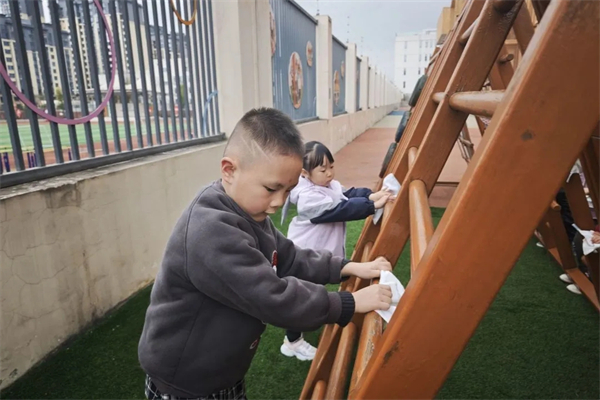 孩子们化身“小小雷锋”,主动擦拭园内小车、打扫户外卫生,修补破损图书、整理图书室,在服务集体、发现榜样的过程中,增强了责任意识与共情能力,真切体会到“帮助他人、快乐自己”的含义。