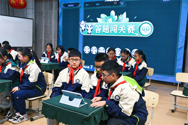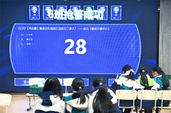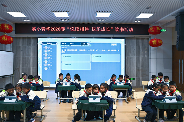 本次竞赛设积分赛、抢答赛两大环节,采用线上答题、大屏实时积分的方式,让每一份努力都清晰可见。随后,各班选拔的3名阅读小能手组队登场,紧扣“典耀中华”寒假阅读书目展开知识角逐。积分赛上,孩子们凝神静思,尽显平日阅读积淀;抢答赛中,大家眼疾手快,展露扎实知识锋芒。