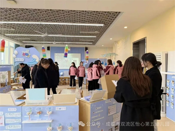 当晨光轻抚过走廊转角,成都市双流区怡心第五幼儿园(以下简称:怡心五幼)的环创评比正如一场春天的诗会在教学楼内徐徐展开。3月19日上午,由保教办精心组织的这场以“小环境大教育,方寸间见天地”为主题的环境创设评比活动,通过“观摩-研讨-升华”的三重奏,为全体教师搭建起一场关于儿童立场的深度对话。