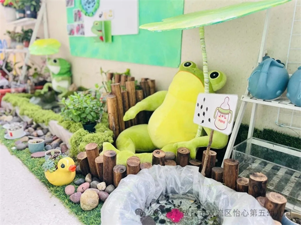 当区域创设与个性化课程发生深度共鸣,环境便获得了持续生长的生命力。有的班级将“小蝌蚪变青蛙”的主题融入自然观察角,投放不同发育阶段的蝌蚪,帮助幼儿直观理解生命成长的完整过程。有的班级以“幼小衔接”为核心创设班级区域,开设“小学体验馆”,模拟课堂、整理书包、认识课表等活动,帮助幼儿在角色体验中熟悉小学生活,平稳过渡。这种“环境即课程"的实践范式,完美诠释了“环境应与课程目标相一致”的教育原则。