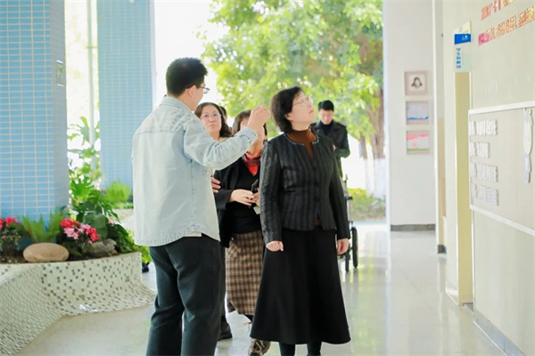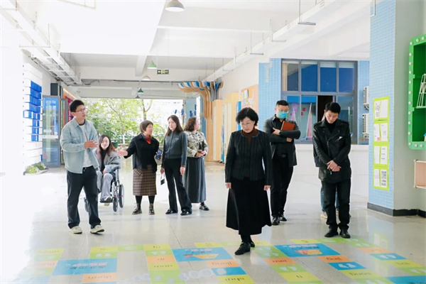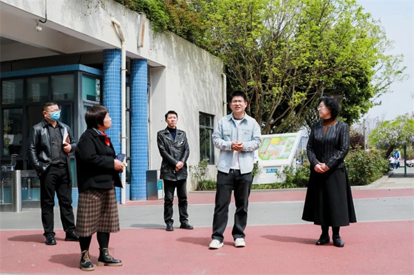 课程研发部周科副主任引领专家团队漫步天府七小校园,讲解校园空间构建背后的教育理念。丰富多彩且具包容性的校园空间,让专家们切实感受环境育人的魅力,体会到学校打造育人环境的用心。