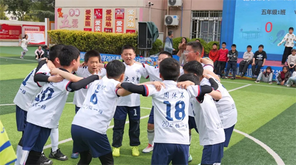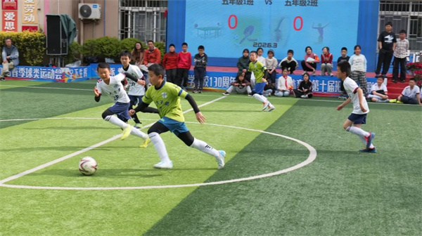 开幕式落幕,激情永不落幕。备受瞩目的揭幕战在五年级一班与五年级二班之间正式打响,王利琨亲自为比赛开球,小小的皮球承载着希望与期待,在绿茵场上划出优美的弧线。随着裁判一声哨响,双方队员迅速进入状态,奔跑、传球、抢断、射门,一系列动作娴熟流畅、干净利落;赛场之上,队员们配合默契、奋勇争先,每一次攻防都扣人心弦,每一次突破都引来阵阵欢呼。场边观赛的师生们挥舞着彩旗、高声呐喊助威,欢呼声、加油声、掌声交织在一起,响彻整个运动场,将现场气氛一次次推向高潮。