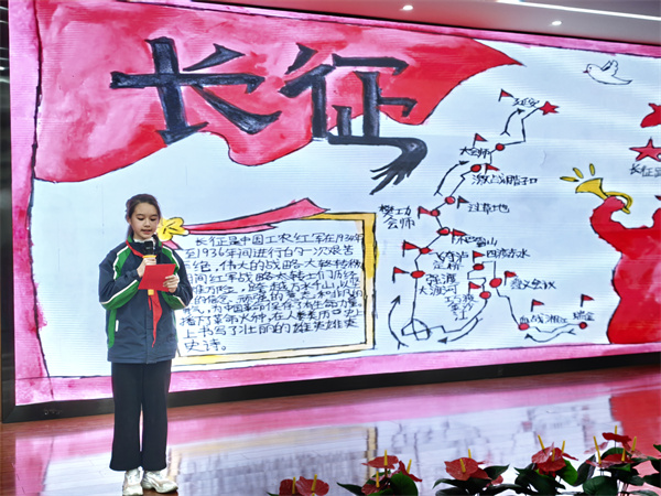 3月24日,年级比赛正式拉开帷幕。活动以“奋斗”为主线,分为三个篇章。在“方寸之间,绘就奋斗”篇章中,各班“故事讲述达人”依次登台,展示精心创作的小报,生动讲述了长征精神、袁隆平“禾下乘凉梦”、航天英雄逐梦太空、雷锋助人为乐、钱学森“两弹一星”奉献等奋斗故事,带领同学们触摸历史、致敬英雄。