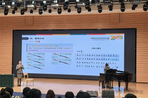 3月19日上午,由棠湖中学怡心实验学校音乐组教师聚焦三、四年级中段学段目标进行第二阶段解读。老师们从六大维度解析中段教材编写逻辑与育人导向,梳理知识梯度与素养落点;从单元整体、内部结构等层面对比新旧教材,明晰修订亮点与主题脉络进阶;并在现场展开四类典型案例教学实操展示,各课例环节设计紧扣新课标与新教材要求。