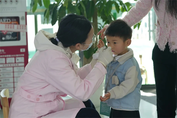 在保健员的引导下,洗手消毒、排队晨检、佩戴好参观证的宝贝们,在温馨的互动中开心入园。FJb四川教育在线-四川教育讯息