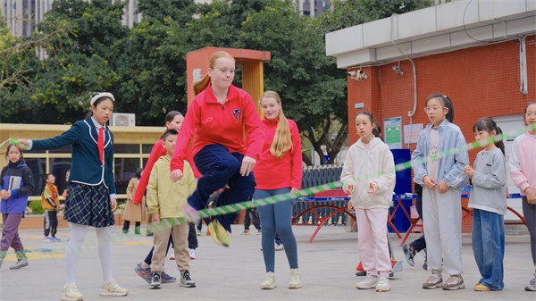 下午,篮球场上,中英学生混合组队,开展了一场酣畅淋漓的友谊赛——运球突破、精准投篮,比分在欢呼声中交替上升;排球网前,双方队员默契配合,扣杀与拦网尽显少年意气。