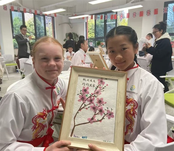 操场上,空竹翻飞、武术刚劲、舞龙翻腾,中国传统体育的魅力让英国孩子们跃跃欲试;二楼教室里,桃花画框制作将春日芳华永驻指尖,戏剧课程演绎着跨文化故事;小花园中,太空种子培育活动播撒下绿色希望。