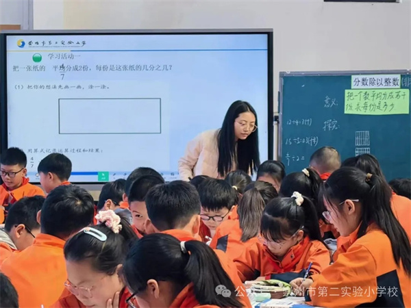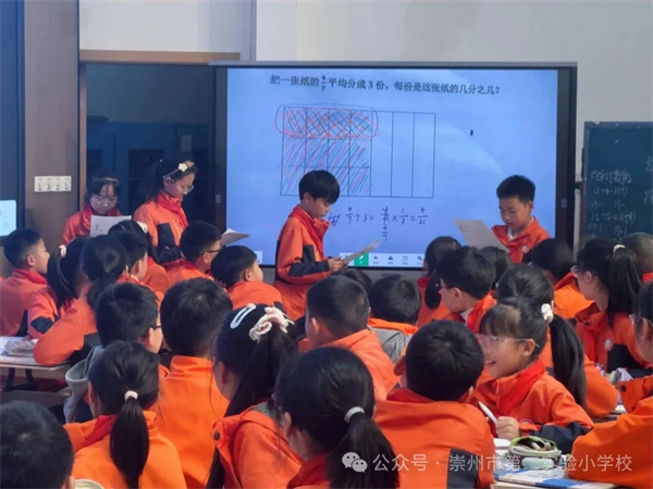 为深化核心素养导向的小学数学课堂教学改革,扎实推进小组合作学习模式落地见效,让学生在自主探究与协作交流中提升数学思维,3月24日下午,崇州市第二实验小学校(以下简称:崇州实验二小)五年级秦鑫钥老师以北师大版教材为依托,执教《分数除法(一)》一课,为全体教师呈现了一节聚焦小组合作、深挖数学本质的优质课例。