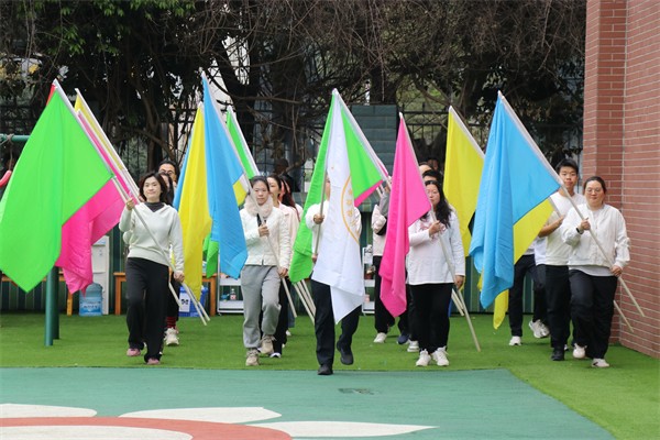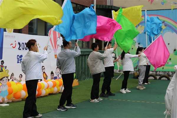 手持彩旗的家长代表团迈着矫健的步伐入场,彩旗飘扬、热情满溢,成为运动场上一道亮丽的风景线,萌娃们纷纷为爸爸妈妈欢呼鼓掌,现场氛围瞬间被点燃。