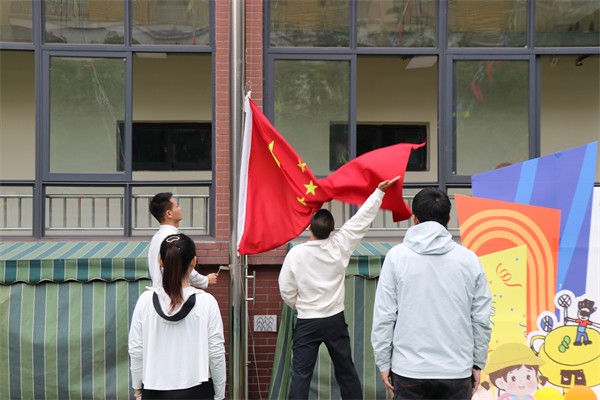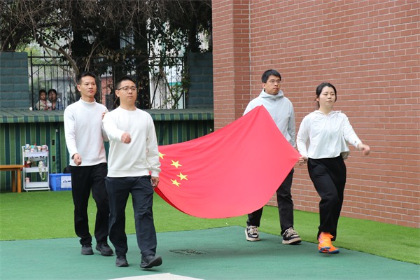鲜艳的五星红旗迎着春风冉冉升起,小一班吕行爸爸、小二班张子越爸爸、小二班黄六一爸爸、小三班杨梓沫妈妈担任护旗手,全场肃立行注目礼,雄壮的国歌声中,爱国情怀在每个人心中悄然萌发。