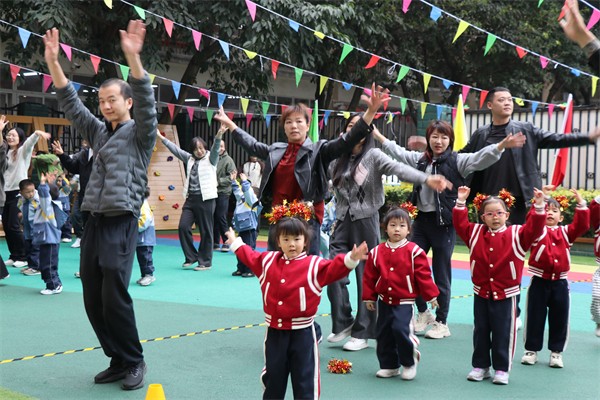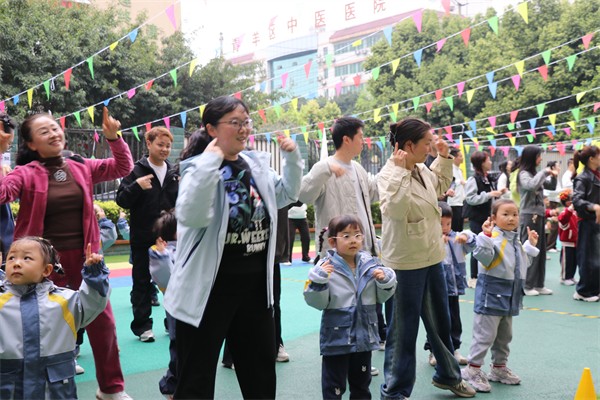 运动需热身,默契需培养。家长与孩子们共同参与律动热身,跟着欢快的节奏携手舞动,轻松的互动让亲子间的默契悄然升温,也为接下来的趣味游戏做好充分准备。