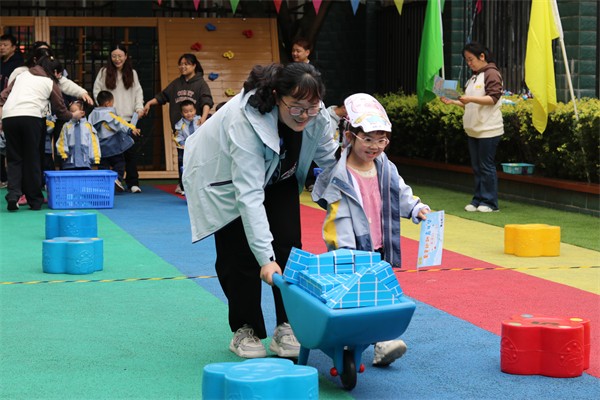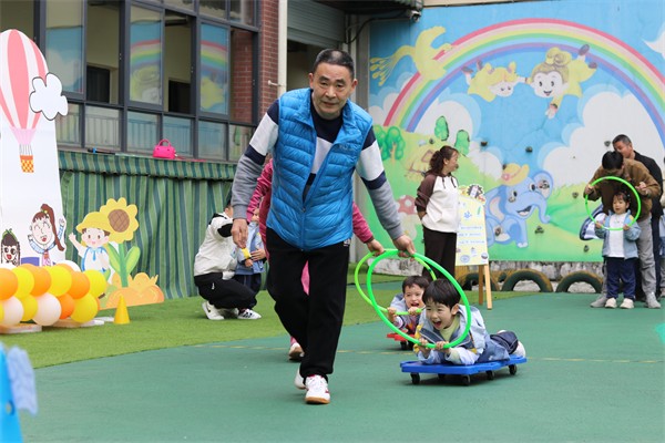 宝贝们和家长大手牵小手,在游戏中协作闯关,推车绕过障碍、携手运送花瓣、合作跨越栏架,每一个游戏都充满挑战与欢乐,每一处角落都回荡着欢声笑语。