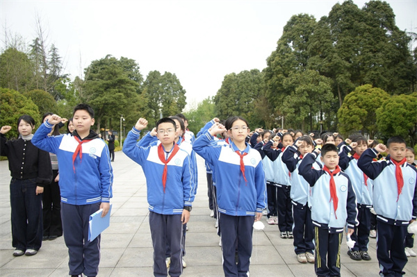 活动最后,全体学生高举右拳,面向纪念碑庄严宣誓。“铭记历史,缅怀先烈;珍惜和平,开创未来;勤奋学习,砥砺品格;传承红色基因,争做新时代新人;强国有我,不负韶华!”稚嫩的嗓音汇聚成磅礴的力量,铮铮誓言响彻陵园,这是附校少年对革命先烈的深情告慰,更是对时代与祖国的郑重承诺。