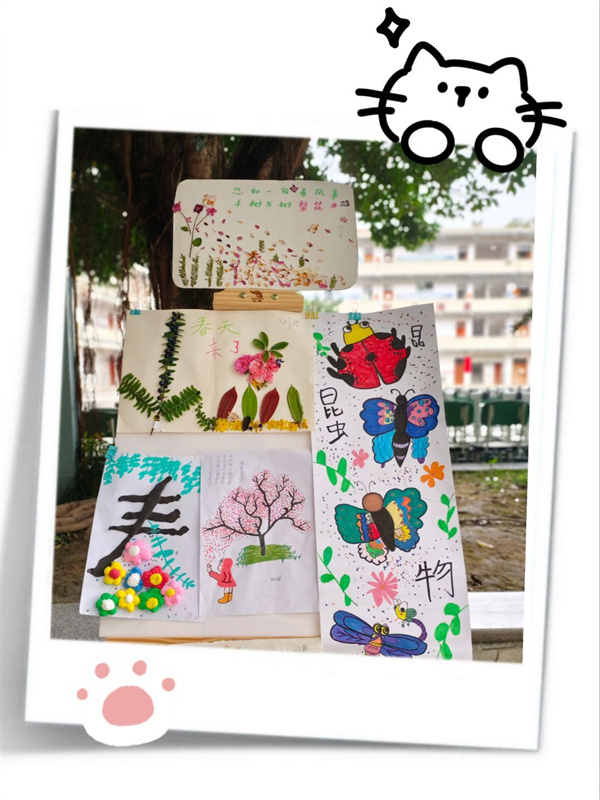各班首先进行班级内部作品评选。同学们积极参与,创作热情高涨,提交的作品形式多样、内容丰富:有创意满满的树叶贴画,有图文并茂的手抄报,有色彩鲜艳的水彩蜡笔画,还有精致可爱的春天小手工、花朵手环等。每一件作品都展现了孩子们对春天独特的理解与想象。