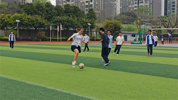 随后,两国学子在绿茵场上展开足球友谊赛,奔跑、传球、射门,青春的身影在阳光下交织碰撞,友谊在协作与切磋中悄然升温。