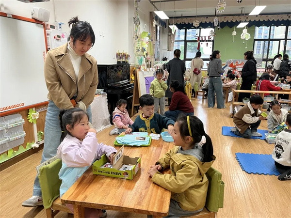 专题分享后,与会教师走进中二班、大一班,现场观摩赵艳、黄燕两位老师组织的区域游戏活动。