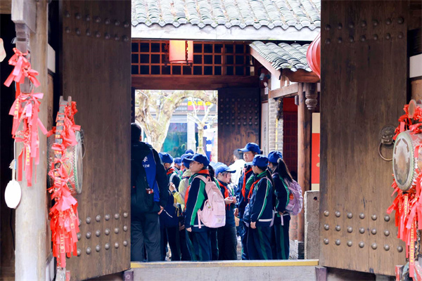 穿行于古韵盎然的老街,青墙黛瓦间藏着岁月故事,民俗风物里透着川西风情。同学们踏在青石板路上,静静感受古镇独有的烟火与温柔,在一砖一瓦间聆听着古镇故事。