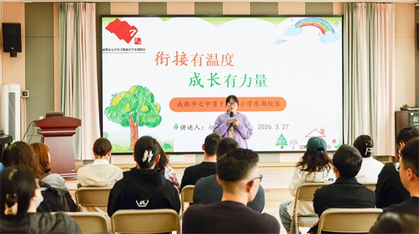 为深化家校协同育人共识,探索从幼儿园到小学的贯通培养路径,助力孩子平稳过渡、持续成长。2026年3月27日,成都市七中育才附属小学东湖校区一年级教师团队走进成都市锦江区东润幼儿园,联合开展了“成长有力量,衔接有温度”的幼小衔接家长专题讲座。