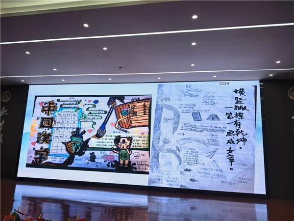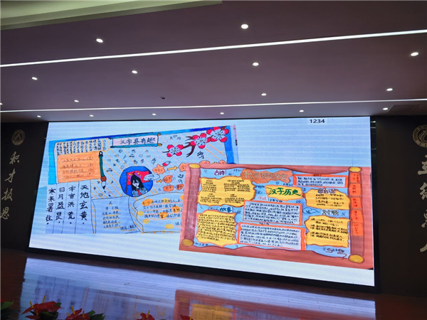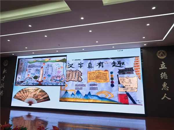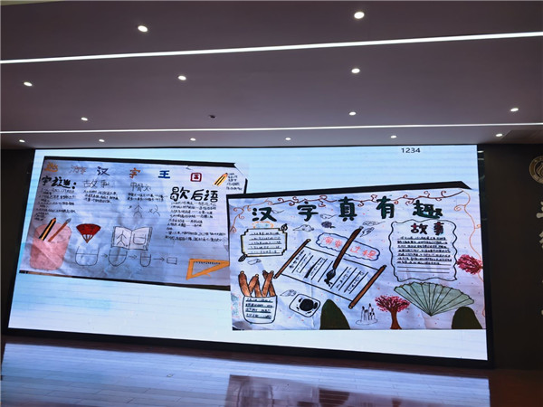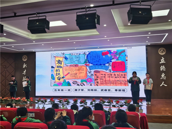 活动伊始,各班精心制作的汉字小报依次展现在师生面前。一张张色彩斑斓、构思巧妙的小报,或追溯甲骨文到楷书的演变脉络,或展现谐音歇后语的字趣幽默,或摘录诗意流淌的古今诗词,或剪贴巧夺天工的“福”字剪纸。点画之间有乾坤,方块字里藏文明,同学们用画笔与巧思,让汉字在纸上“活”了起来,引来阵阵赞叹。