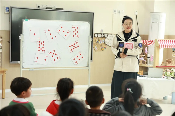 大班组围绕“纸牌”与“分解、组合”展开数学探究活动。孩子们在纸牌排序中锻炼逻辑思维,在分解组合中理解数量关系,真正实现“玩中学、做中思”。家长们陪伴观察,在互动中发现孩子思考的闪光点,共同体验数学的趣味与智慧。