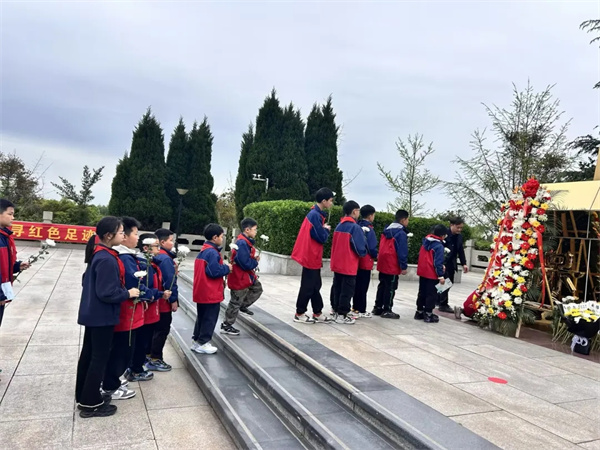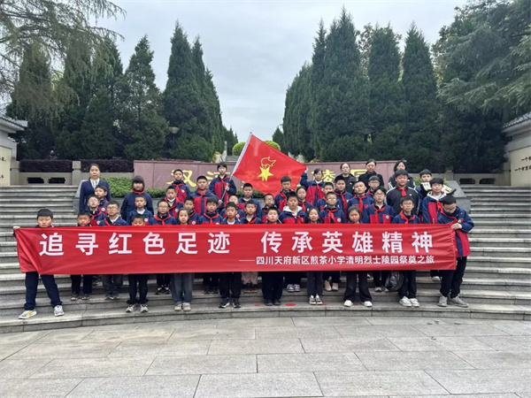 清明寄哀思,薪火传精神。为缅怀革命先烈、厚植爱国情怀,落实立德树人根本任务,近期,四川天府新区煎茶小学面向3—6年级少先队员开展了“追寻红色足迹,传承英雄精神——清明烈士陵园祭奠之旅”PBL项目式学习主题教育活动。同学们以项目探究为路径,以实践体验为课堂,在追思英烈、学习英烈、致敬英烈的过程中,接受了一场深刻的红色精神洗礼。
