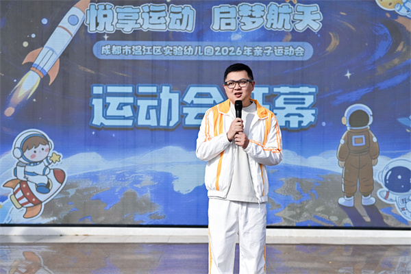 运动会正式拉开帷幕前,温江区实验幼儿园园长孙城宣布亲子运动会正式启动,为本次活动拉开精彩序幕。随后,家长代表真挚发言,表达了对幼儿园工作的支持与对孩子们的美好祝愿,鼓励孩子们勇敢挑战、快乐运动,在运动中强健体魄,在体验中种下航天梦想的种子,以积极向上的姿态拥抱成长。
