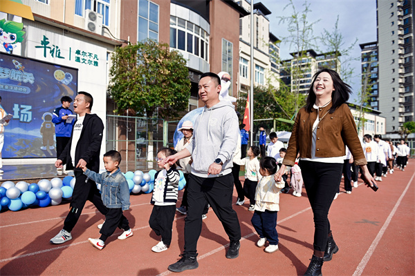 春风送暖,活力飞扬。为落实“健康第一”教育理念,践行“动起来、身上有汗、眼里有光”的健康育人导向,进一步激发幼儿运动热情、厚植航天梦想,增进亲子情感与家园共育,2026年4月1日上午,成都市温江区实验幼儿园“悦享运动,启梦航天”主题亲子运动会顺利举行。全园幼儿、家长与教职工以运动之名、赴航天之约,共同度过一段温馨欢乐、充满力量的美好时光。