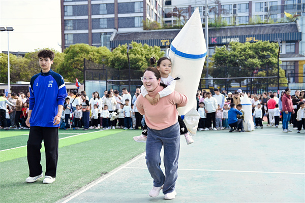 最令人期待的亲子运动项目正式开启。热身结束后,五大趣味航天主题项目同步开启,将运动与梦想完美融合。趣味隧道、亲子飞船、航天火箭冲刺、太空漫步……整个赛场热闹非凡,加油声、欢呼声此起彼伏。孩子们在运动中勇敢拼搏,家长们在陪伴中享受温情,每一个家庭都全力以赴,每一次协作都充满温暖。老师们全程悉心守护、耐心指导、及时鼓励,为活动安全有序开展保驾护航。