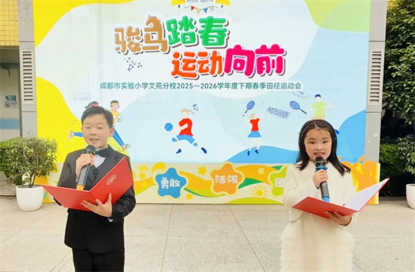 春日暖阳沐校园,少年意气展风华。2026年3月30日,成都市实验小学文苑分校操场上彩旗飘扬、欢声阵阵,以“骏马踏春,运动向前”为主题的春季田径运动会盛大开幕,全校师生与家长齐聚赛场,共同迎接这场活力满满的体育盛会。