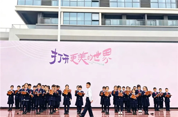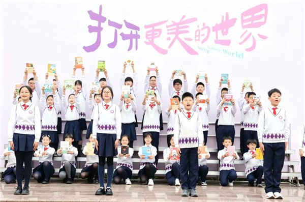 随后,升旗班级少先队员代表和教师代表登台,以《“从锦门,向书行”阅读倡议书》发出倡议。