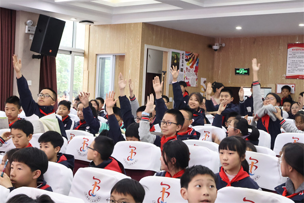 讲座结束后,六年级少先队员代表手捧鲜花,满怀敬意地走上讲台。一束鲜花,承载着二仙学子对知识的敬畏与感恩;一个队礼,传递着尊师重道、心怀家国的品格。这一刻,党建的温度、科技的力量与教育的温情在春日校园里交融绽放。