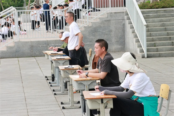 本次大课间活动比赛中,各班班主任和科任老师也全员参与、全程融入,与学生们一起完成每一套操,老师们精神抖擞、认真投入,成为同学们最好的榜样;学生们斗志昂扬、力争上游,操场上师生同心、动作整齐,场面温馨而热烈,展示出师生风采和浓浓的师生情谊。