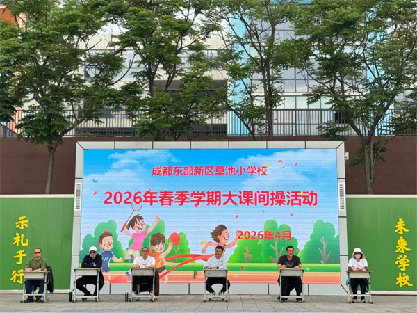 阳光明媚,活力绽放,2026年4月10日,在成都东部新区草池小学校,一场充满朝气与力量的阳光大课间,成为校园里最动人的风景线。以“阳光大课间·精彩每一天”为主题,校园活力全面迸发,书写着草小少年健康成长的美好篇章。