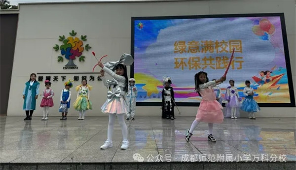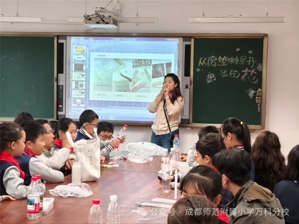 近日,成都师范附属小学万科分校(以下简称:成师附小万科分校)的校园里,没有轰轰烈烈的口号,只有孩子们手中翻飞的塑料袋、快递盒、旧布料。