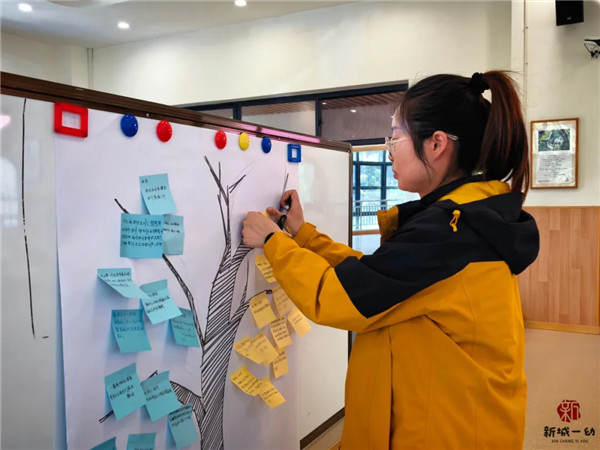 紧接着,大家分别用不同色彩的便笺纸写下自己主动解决的问题及在同事的协助下解决的问题,并贴在“罗文树”上。通过这种做法,将“罗文行动”落在老师们日常工作的每一件小事上,这些不起眼的小事,藏着团队的担当与温暖,也正是幼儿园里最动人的“罗文精神”,值得被看见、被记住。