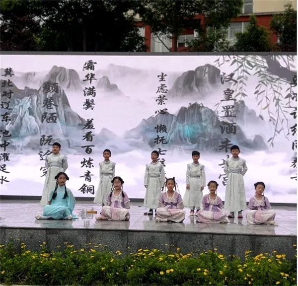 活动在经典吟诵中拉开帷幕。开幕式上,四年级4班的同学首先带来了韵律悠扬的《声律启蒙》。同学们字正腔圆的吟诵,配合优雅的动作、动听的琴声,将中华传统声韵之美生动呈现,赢得了全场师生的热烈掌声。