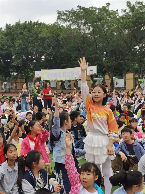 随后,刘心雨老师宣读了儿童文学节倡议书,倡议全体同学“每天坚持阅读,让书成为你的好朋友”,在阅读中思考、在分享中成长。真挚的话语深深打动了在场的每一位师生。