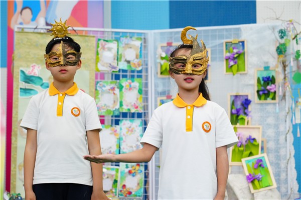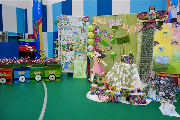 A区文学社的小演员们请回了春神——她踏着青草走来,轻轻抬手,草地仿佛真的绿了。春天被点亮。