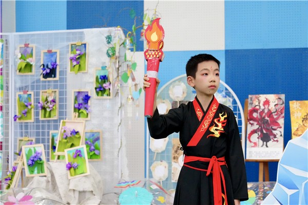 随后,B区文学社的小演员们请回了夏神。红色的衣袍随风飘舞,热情感染了全场。