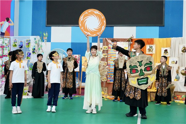 四位神明齐聚,四种光芒交织。所有孩子手拉手,面向观众,齐声诵出心中的诗:“春神轻触泥土的脉搏,夏神点燃敬畏的火,秋神捧出金黄的谷粒,冬神守护沉睡的承诺。在桑蚕吐丝的韵律里,在龙舟竞渡的汗水间,在打谷场上感恩的鞠躬,在火塘边编织的寓言。神鸟振翅,梧桐花开,人间温暖如诗。”声音落进春风里,掌声如潮。这一天,神鸟归心。孩子们点亮了四季。